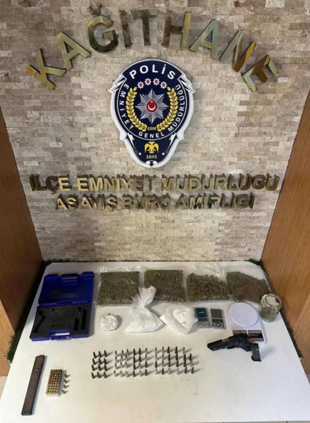 Saldırılarla ilgili çalışma başlatan Kağıthane Asayiş Büro Amirliği ekipleri, geriye ve ileriye dönük güvenlik kamera görüntülerini inceledi. Yapılan saha çalışmalarında şüphelilerin kaldıkları ev de tespit edildi. Eve operasyon düzenleyen polis, M.K.(14) ve A.D.’yi (14) yakaladı. Gözaltına alınan 2 şüpheli emniyete götürüldü. Evde yapılan aramalarda ise bin 195 gram marihuanna, 560 gram toz kokain, 3 adet hassas terazi, ruhsatsız tabanca, şarjörler ve fişek ele geçirildi.