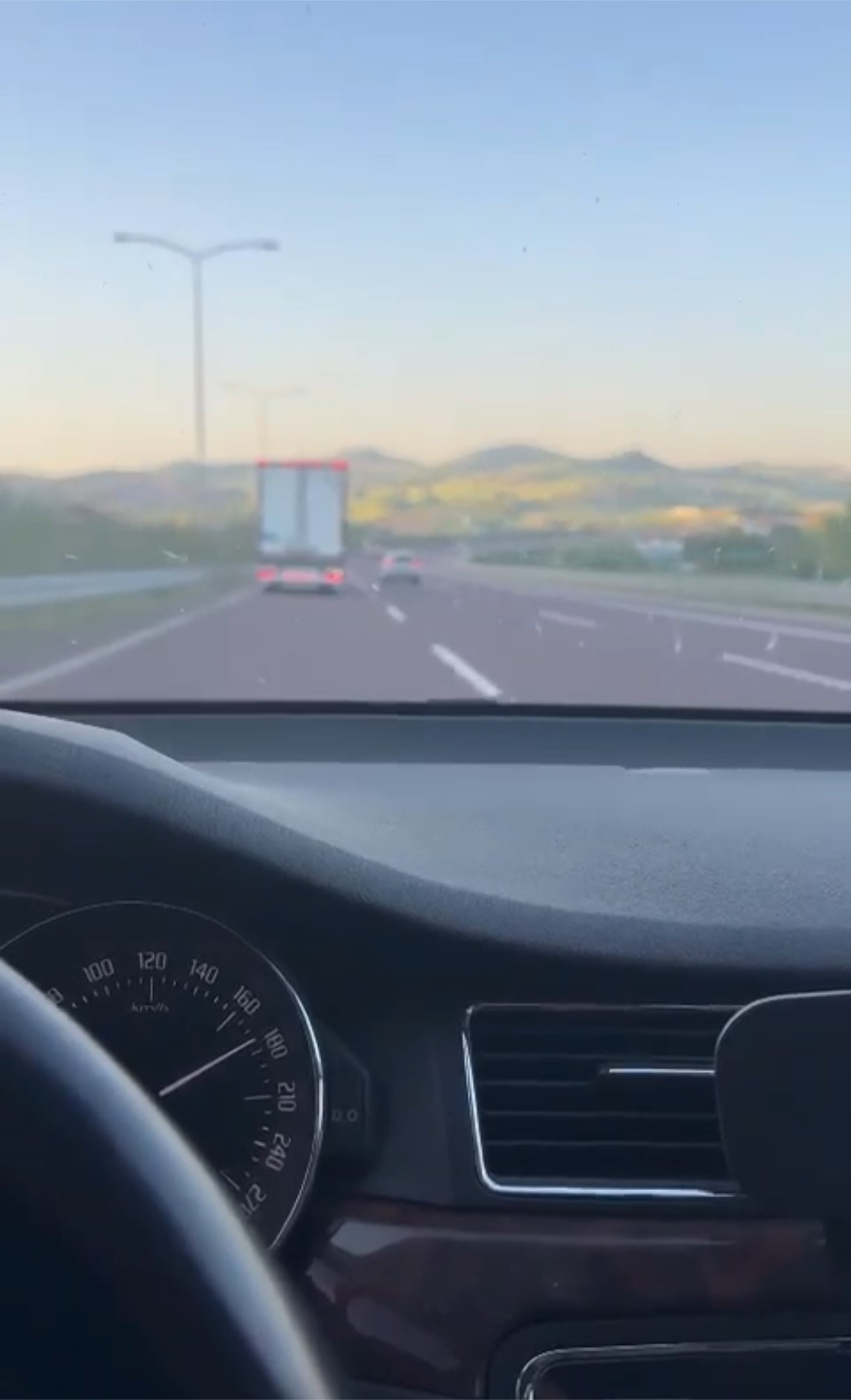 Aynı yolda ilerleyen araç sahiplerinin kilometredeki hızı 180'e çıkarken önünde seyreden tıra yetişmekte zorluk çekti.