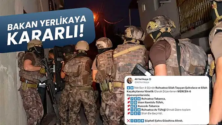 İçişleri Bakanı Ali Yerlikaya, 68 ilde ruhsatsız silah taşıyan şahıslara ve silah kaçakçılarına yönelik yapılan Mercek-6 Operasyoları'nda bin 129 kişinin gözaltına alındığını duyurdu.