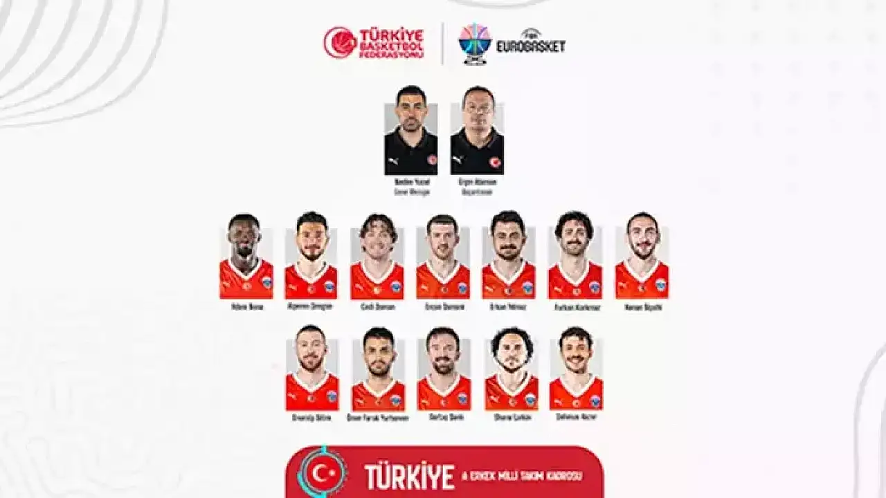 FIBA 2025 Avrupa Şampiyonası'nda mücadele edecek olan A Erkek Basketbol Milli Takımımızın 12 kişilik sporcu kadrosu belirlendi.