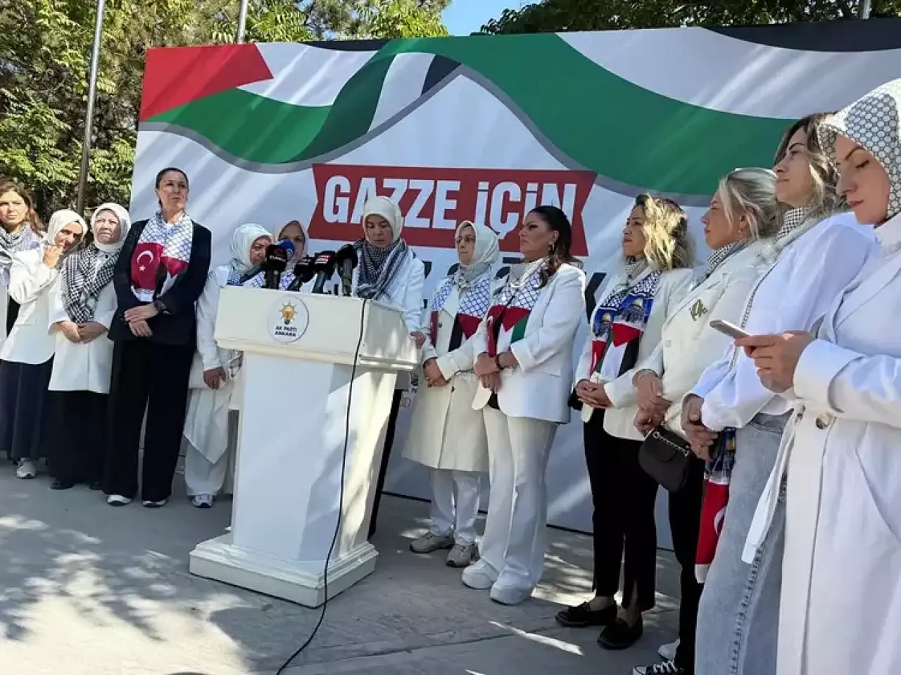 AK Parti Genel Merkez Kadın Kolları Başkanlığı, İsrail'in Gazze'ye yönelik saldırılarının 2'nci yıl dönümü nedeniyle 81 ilde 'Gazze İçin Sessiz Çığlık' etkinliği düzenledi. AK Parti Ankara İl Kadın Kolları üyeleri, bu kapsamda Dışişleri Bakanlığı konutu önünde bir araya geldi. 'Barış kadınla mümkün', 'Filistin özgür olacak', 'Özgür Filistin' yazılı pankartlar ile Türk ve Filistin bayrakları taşıyan katılımcılar, Gazze'de yaşanan zulme tepki gösterdi. Etkinliğe AK Parti Grup Başkanvekili Leyla Şahin Usta, AK Parti Ankara Milletvekilleri Jülide Sarıeroğlu ve Lütfiye Selva Çam, Akyurt Belediye Başkanı Hilal Ayık ile partili kadınlar katıldı. Eyleme katılan kadınlar el ele tutuşarak Dışişleri konutu ile İsrail Büyükelçiliği arasında zincir oluşturdu.