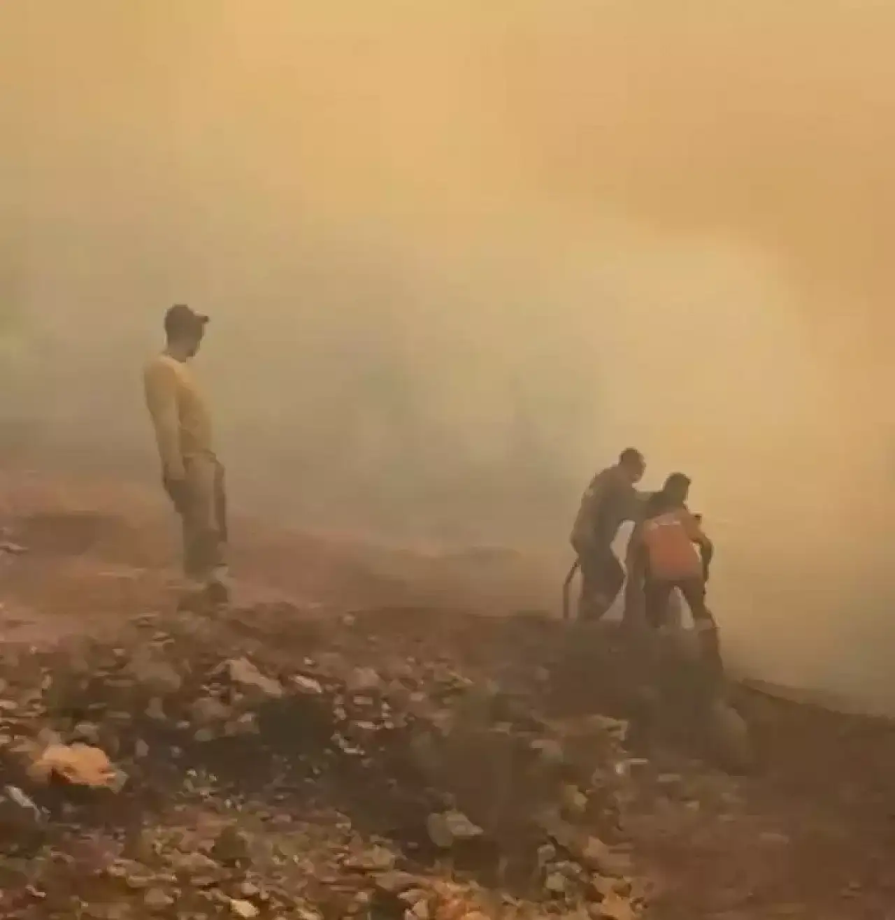 Havanın kararmasıyla birlikte havadan müdahale sona ererken, ekiplerin çalışmaları devam ediyor.