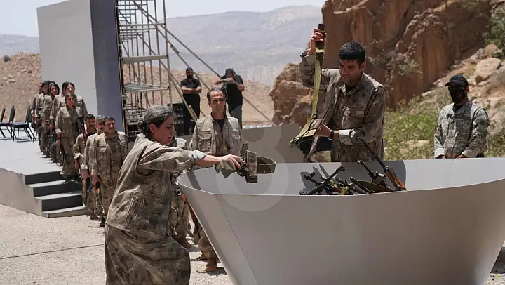 27 Kasım 1978'de Diyarbakır'ın Lice ilçesine bağlı Fis köyünde, Abdullah Öcalan başkanlığında 22 kişinin katılımıyla kuruluşunu ilan eden terör örgütü PKK, 5-7 Mayıs tarihlerinde düzenlediği 12'nci kongresinde fesih kararı almıştı. Bu kararın ardından bir grup PKK üyesi bugün düzenlenen törenle silah bıraktı. Tören Irak Kürdistan Bölgesel Yönetimi'nin Süleymaniye kentindeki Casene Mağarası'nda gerçekleşti.