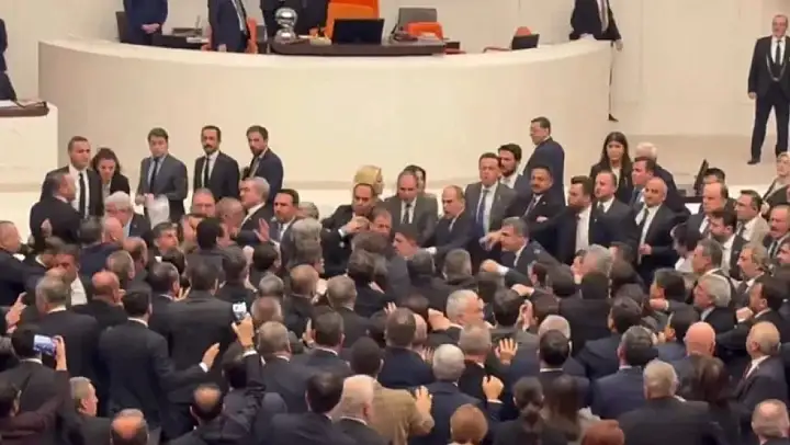 Meclis'teki kavgada gruplar arası büyük bir arbede yaşanırken Meclis Başkanı oturuma ara verdi.