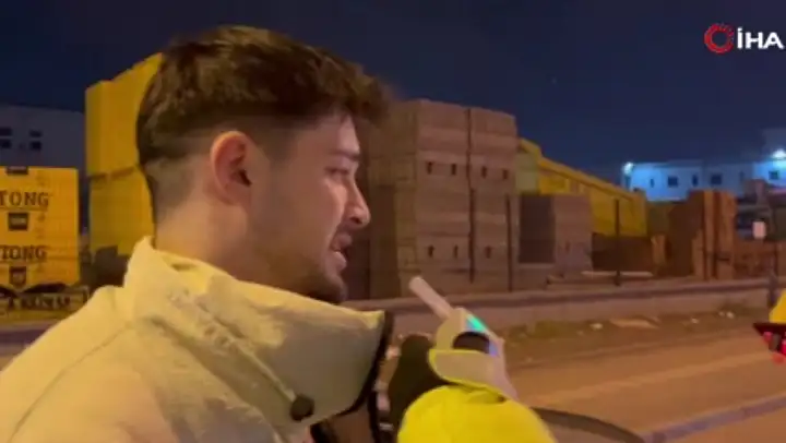 Polis ekiplerine 'Abi alkol var, üflemeyeyim' diyen sürücü, trafik polisinin 'Üflemezsen ret alacağım, 2 yıl ehliyetin gidecek' demesi üzerine, 'Üflersem 6 ay değil mi. Es geçelim abi, yalvarırım gözünü seveyim. Mahvolurum ben, işim bu benim. Üflemeyeyim ne olur' diye yalvardı. Trafik polisinin 'Üflüyor musun son kez soruyorum, üflemezsen ret alacağım' demesiyle beraber ağlama taklidi yaptı. Uzun uğraşlar sonucu alkolmetreye üfleyen Emre E., 1.29 promil alkollü çıktı. İşlemleri yapılmak üzere ekip aracına giden alkollü sürücü sinirden çakmağı patlattı. O anlar saniye saniye kameraya yansıdı. Alkollü sürücüye 9 bin 267 lira ceza yazıldı.