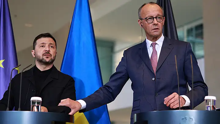 Almanya Başbakanı Friedrich Merz, başkent Berlin'de Ukrayna Devlet Başkanı Vladimir Zelenskiy'i ağırladı. Merz ve Zelenskiy, Başbakanlık binasında gerçekleşen görüşmede Ukrayna-Rusya savaşındaki son durumu, Avrupa güvenliği ve iki ülke ilişkilerini ele aldı. İki lider görüşmenin ardından kameraların karşısına geçti.