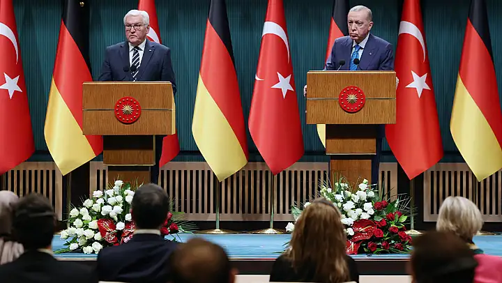 Steinmeier ise, 'Zannediyorum ki ikimiz de şu konuda hemfikiriz: Ortadoğu'da ve bu bölgede çok haraketli bir dönem yaşanıyor. Anlaşılan bir ateşkes Gazze'de kararlaştırıldı. Rehinelerin serbest bırakılmasında ilerlemeler kaydedildi. Lübnan'la ateşkes, Esad rejiminin sona ermesi ve Suriye'de bir yeniden başlangıç, bütün bunlara Almanya ve Türkiye olarak farklı perspektiflerden bakıyoruz. Fakat ortak bir çıkarımız var, o da artık bölgede kalıcı bir barışın yerleşmesi, bunun için Türkiye çok önemli bir aktör. Cumhurbaşkanıyla şu konuda hemfikiriz: Biz mecburuz bütün bu gerginlikler karşısında fırsatları değerlendirmeye mecburuz ve barışçıl ve kalıcı bir gelişme istiyoruz bölgede. Suriye konusunu ayrıntılı bir şekilde ele aldık. Sayın Cumhurbaşkanı dün Şara ile yaptığı görüşme konusunda bana bilgi verdi, ben de Suriye'de kapsayıcı bir sürecin ne kadar önemli olduğuna değindim ve aynı zamanda bütün uluslararası aktörlerle eşgüdümün önemli olduğunu ifade ettim. Suriye'nin istikrarlı olması için tüm etnik grupların katılması gerekir ve böylece Türkiye gibi başka ülkelere de göç etmiş olan insanların geri dönmesi için bir temel oluşturacaktır. Tabii ki İsrail ve Filistin konusuna da değindik, Sayın Cumhurbaşkanıyla şu anda Gazze'de yaşanan ateşkesin bir ilk adım olduğu konusunda hemfikiriz. Böylece kalan rehinelerin serbest bırakılması için ve aynı zamanda insani felaketin de sona erdirilmesi için bir ilk adım. Bu ilk adımdan daha kapsamlı bir siyasi süreç oluşmalı ve bütün aktörleri kapsayan ve bu seyahatim sırasında son 3 günde bunları görüştüm. Filistinlileri Gazze şeridinden göç ettirmek veya sürgüne göndermek yönündeki öneriler, teklifler yaptığım bütün görüşmelerde büyük endişelere sebep oluyor ve korkuya neden oluyor. Bu tür öneriler uluslararası hukuk açısından kabul edilemez ve bundan sonra ABD yönetimiyle yapılacak görüşmeler için de önemli bir temel oluşturulması gerekir. Biz de Almanya olarak iki devletli bir çözümü savunuyoruz. Biliyorsunuz geçen sene ben de deprem bölgesine gitmiştim ve şimdi yeniden inşa için verilecek olan 140 milyon euroluk bir kredinin ilk dilimi kararlaştırıldı ve bu kapsamda depreme dayanıklı okulların inşası gerçekleşecek' açıklamasını yaptı.