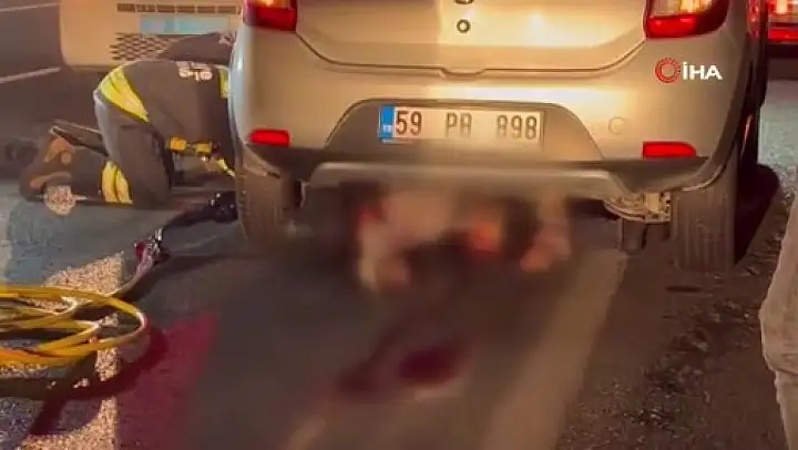 Tekirdağ Çorlu'da yol ortasında oturduğu öne sürülen bir kişi, yoldan geçen otomobilin altında kaldı. Yaklaşık 85 metre araç altında sürüklenen adam feci şekilde yaşamını yitirdi.