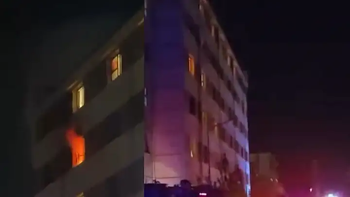 Bursa'da erkek öğrenci yurdunda yangın çıktı. İtfaiye ekiplerinin yangına müdahalesi sürüyor.
