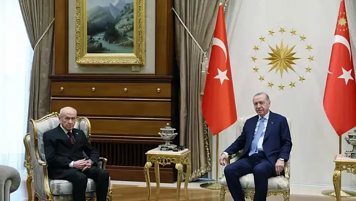 Cumhurbaşkanı Recep Tayyip Erdoğan, MHP Genel Başkanı Devlet Bahçeli ile Cumhurbaşkanlığı Külliyesi'nde bir araya geldi. Basına kapalı gerçekleşen görüşme, saat 16.20'de başladı ve yaklaşık 1 saat sürdü.
