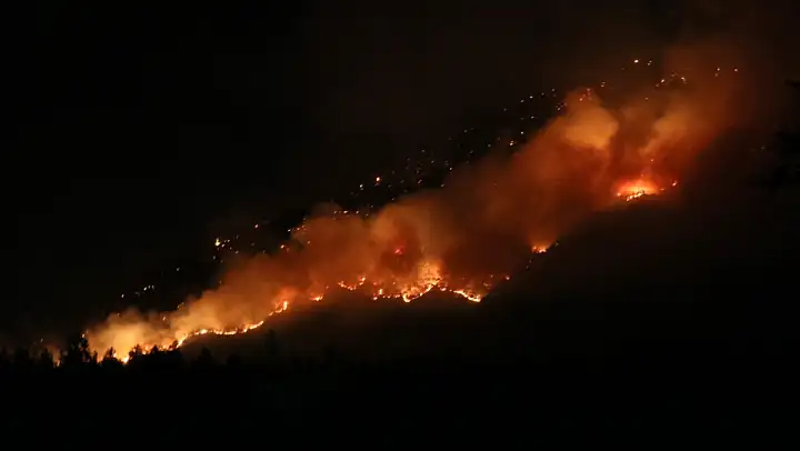 Havanın kararmasıyla birlikte uçak ve helikopter müdahalesinin durdurulduğu yangına iş makineleri, arazöz ve yüzlerce personelle karadan müdahale edildi. Günün ilk ışıklarıyla birlikte havadan müdahalenin yeniden başlamasıyla yangın kontrol altına alındı. Yerleşim alanlarına yaklaşması nedeniyle büyük endişeye neden olan yangın bölgesinde soğutma çalışmalarının devam ettiği bildirildi.