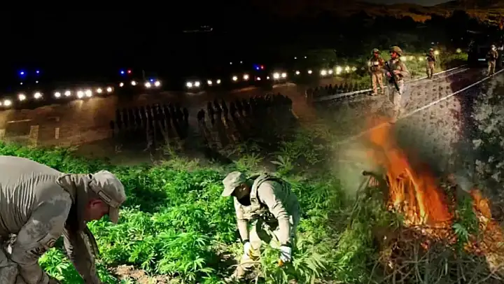 İçişleri Bakanı Ali Yerlikaya, Jandarmanın Diyarbakır'da 100 tondan fazla toz esrar elde edilebilecek 12 milyon 389 bin adet kök kenevir ve skunk ele geçirdiğini sosyal medya hesabından duyurdu.