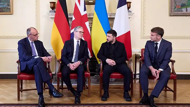 Almanya Başbakanı Friedrich Merz, Fransa Cumhurbaşkanı Emmanuel Macron ve İngiltere Başbakanı Keir Starmer, Londra'da Ukrayna Devlet Başkanı Vladimir Zelenskiy ile yaptıkları görüşme öncesinde 'Ukrayna'nın yanındayız, barışı destekliyoruz' mesajı verdi. Zelenskiy ise 'ABD olmadan çok fazla şey başaramayacağımız da açık. Ancak Avrupa olmadan da başaramayız ve bu konuda önemli kararları birlikte almalıyız. Bu yüzden buradayız, bu görüşmeleri yapıyoruz' diye konuştu.