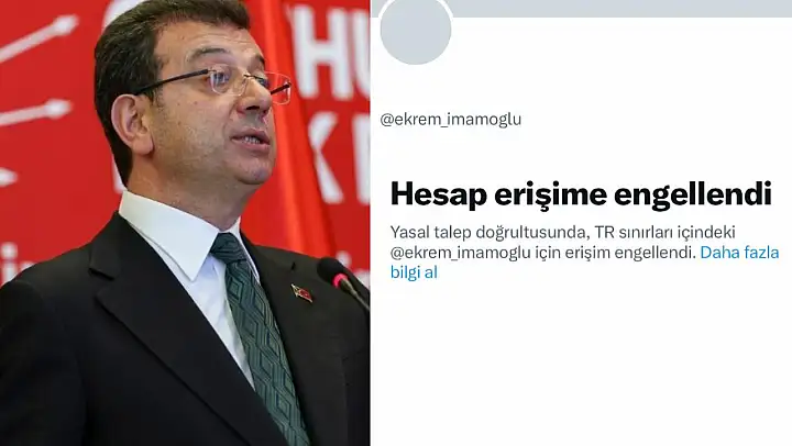 İmamoğlu'nun profiline girildiğinde 'Yasal talep doğrultusunda, TR sınırları içindeki @ekrem_imamoglu için erişim engellendi' ifadeleri yer alıyor.