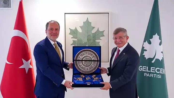 Refah Partisi Genel Başkanı Fatih Erbakan ile Gelecek Partisi Genel Başkanı Ahmet Davutoğlu arasındaki görüşme, yaklaşık 2 saat 15 dakika sürdü. Görüşmenin ardından yapılan ortak basın toplantısında konuşan Gelecek Partisi Lideri Davutoğlu, 'Tek bir heyet gibi çok güzel bir sohbet gerçekleştirdik. Şu konuda hepimizin herhangi bir siyasi hesap gözetmeksizin çalışması konusuna mutabık kaldık: İktidarın kutuplaştırıcı politikası karşısında toplumun bütününü kucaklayan, hepimizin değer verdiği, hepimizin referans aldığı ilkeleri koruyan bir muhafazakar muhalefetin oluşması. Bu çerçevede; bir araya geldiğimizde istişare ettiğimiz hususları tekrar gözden geçirdikten sonra partilerimiz arasındaki iş birliğinin herhangi bir limit, bir sınır olmaksızın ülkemizin, milletimizin menfaatine somut neler yapabiliriz sorusuna cevap verecek şekilde ilerletilmesi konusunda bir görüş birliğine vardık. Heyetlerimiz bu konuları daha detaylı olarak ele alacaklar. İki genel başkan olarak biz bu istişareler neticesinde hem iki parti arasında hem de Türkiye Büyük Millet Meclisi çatısı altında diğer muhalefet partileri arasında nasıl bir iş birliği yapabileceğimizin detaylarını inşallah konuşacağız. İstişarelerimiz daha da yoğunlaşarak devam edecek. Siyasi partiler milletin geleceği için vardırlar. Önemli olan milletimizin önüne yeni bir ufuk ortaya koyabilmek, çizebilmek ve yeni alternatifler sunabilmek; dünyada gittikçe zalimleşen düzene karşı bölgemizde bütün ülkeleri kasıp kavuran jeopolitik depremler, İsrail saldırılarına karşı ve ülkemizde yoksullukla, yolsuzlukla mücadele eden mağdur olan geniş kitlelerin hakkını koruyacak şekilde güçlü alternatiflerin ortaya çıkmasını sağlamak. Her zaman olduğu gibi son derece sıcak samimi bir görüşme içinde toplantıda bunları ele aldık. Ben tekrar Sayın Erbakan'a çok değerli heyetine ki hepsi birbirinden kıymetli arkadaşlarımız. Bu güzel ziyaretleri için teşekkür ediyorum. Açık yürekli istişarelerimizin hayırlı olmasını diliyorum. İnşallah bundan sonra da daha sık görüşmeye devam edeceğiz' dedi.