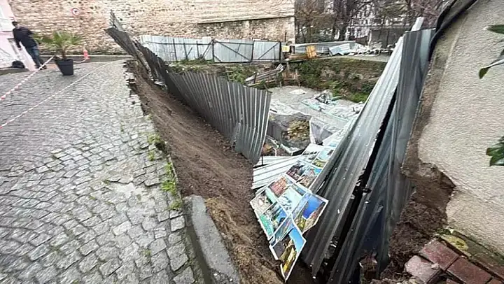 Olay, dün saat 13.30 sıralarında Sultanahmet Binbirdirek Mahallesi'nde meydana geldi. Edinilen bilgiye göre, sokakta bulunan otelin karşısındaki şantiye alanında toprak kayması yaşandı.