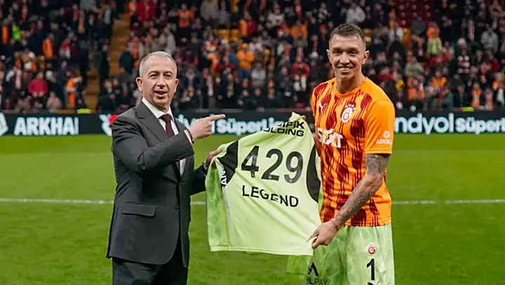Galatasaray'ın Uruguaylı file bekçisi Fernando Muslera, Konyaspor karşılaşmasıyla sarı-kırmızılılarla Süper Lig'de 429. maçına çıktı ve bu alanda kulüp tarihinin en çok forma giyen oyuncusu oldu.