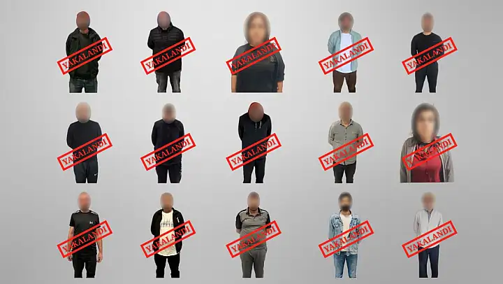 Kırmızı bültenle uluslararası seviyede aranan H.K.Ş., F.N., C.B., R.K., S.A., S.Ş., O.K., K.Y., N.G., N.K., A.C., S.A., M.L. ile ulusal seviyede aranan M.A. ve B.B. isimli şahıslar yakalandı