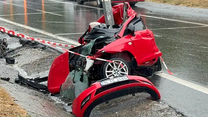 İstanbul'daki sağanak yağış nedeniyle 1 kişi hayatını kaybetti. Bir sürücü, kayan yolda direksiyon hakimiyetini kaybederek direğe çarptı.