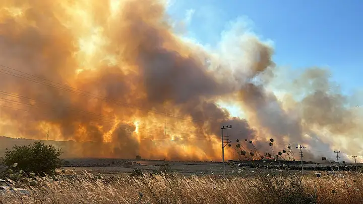 İzmir'in Seferihisar ilçesi Azmakyolu mevkisinde çıkan yangın nedeniyle bin 500 kişilik TOKİ konutları tedbir amaçlı tahliye edildi. İtfaiye ekiplerinin çalışmasıyla yangın kontrol altına alınırken soğutma çalışmaları devam ediyor.