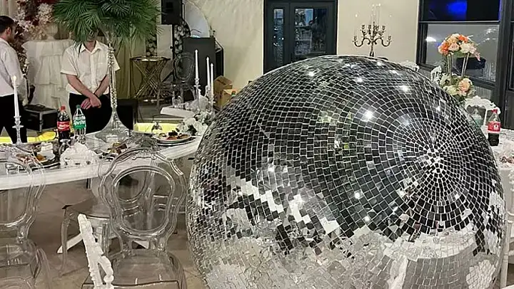 İddiaya göre B.M. (28) ve B.S.'nin (28) kına gecesi için bir araya gelen misafirler büyük bir şok yaşadı. Salonun içinde bulunan hareketli disko topu koparak gelin ve iki misafirin üzerine düştü.