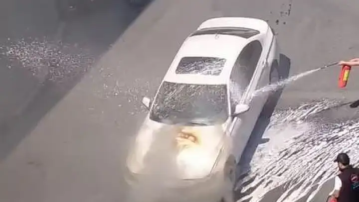Küçükçekmece'de yanan araca vatandaşlar yangın tüpü ve içi su dolu kovalarla müdahale etti.