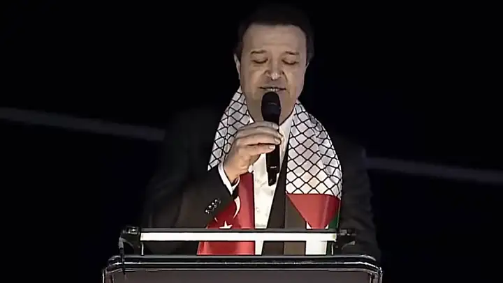 ''Sözlerimin hemen başında, Filistin halkının haklı direnişine destek veren, bu uğurda mücadele eden ve büyük bedeller ödeyen, Necmettin Erbakan'dan, Deniz Gezmiş'e, Rachel Corrie'den, Ayşenur Ezgi Eygi'ye tüm Filistin dostlarını sonsuz bir saygı ile selamlıyorum. Bugün bizi Filistin Başkonsolosluğu'nun yanında, Eyüp Sultan Hazretlerinin manevi makamında sizlerle buluşturan Cumhuriyet Halk Partisi Genel Başkanı Sayın Özgür Özel'e ve değerli yol arkadaşlarına en içten teşekkürlerimi iletiyorum. Bugün 24 Eylül 2025, tarihe not düşmek için gözbebeğimiz İstanbul'dayız. Biz; inancımızın, haktan ve adaletten yana duruşumuzun bir gereği olarak buradayız. Filistin'in, Gazze'nin, Kudüs'ün ve Mescidi Aksa'nın yanında olduğumuz için buradayız. Filistin, bugün dünyanın dört bir yanında birbirinden çok farklı yaşam tarzını benimsemiş milyarlarca insanın tek yürek olduğu bir meşaleye dönmüştür. Zulümlere kayıtsız kalan, tek tip dünya vatandaşı üretmeyi arzulayan siyonist mekanizmalar vicdan sahibi evrensel mozaik karşısında aciz kalmıştır. Milliyetçi, sosyalist, muhafazakar veya liberal; milyarlarca insanın ağzından tek bir söz yükseliyor: 'Nehirden Denize Özgür Filistin.'