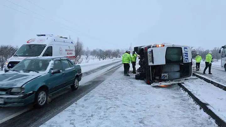 Nevşehir'de buzlanma nedeniyle kontrolden çıkan yolcu minibüsün devrildiği kazada 6 kişi yaralandı.