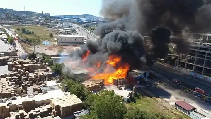 Kocaeli'nin Çayırova ilçesi Şekerpınar bölgesinde bir palet fabrikasında yangın çıktı.Fabrikanın bahçesindeki paletler aniden alev aldı ve kısa sürede alevler tüm tesisi sardı.Olay yerine çok sayıda itfaiye ekibi yönlendirilirken, gökyüzü yoğun siyah dumanlarla kaplandı.