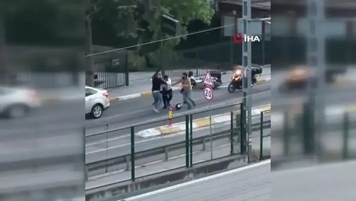 Tartışma kısa sürede kavgaya dönüştü. Taraflar birbirlerine yumruklarla saldırdı, bir kişi karşısındakinin başına kaskla vurdu. Kavga sırasında şahıslardan biri otomobilden aldığı bıçağı karşı tarafa savurdu. Bir başka şahıs ise karşısındakini yere yatırarak darp etti. O anlar bir vatandaşın cep telefonu kamerasına yansıdı.