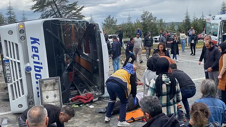 Isparta-Afyonkarahisar karayolunda seyir halinde olan Keçiborlu turizme ait yolcu midibüsü sürücüsünün direksiyon hakimiyetini kaybetmesi sonucu refüjü aşarak devrildi. Kazada ilk belirlemelere göre çok sayıda yolcu yaralandı.