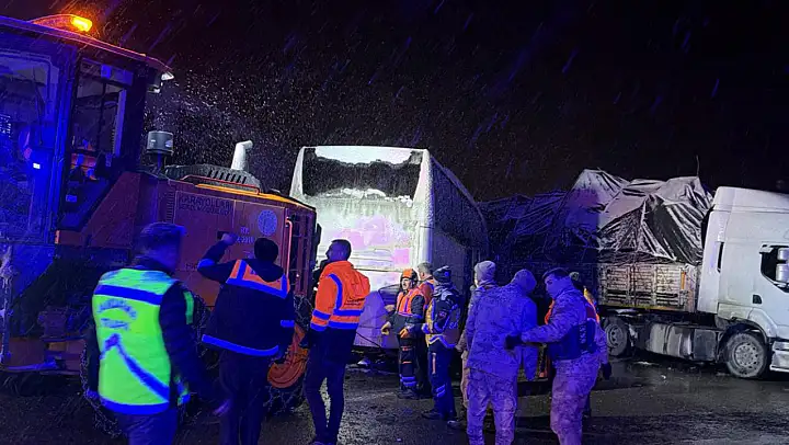 Bingöl'de kar ve buzlanmadan dolayı kayan tır, yolu kapattı. Bu sırada duramayan yolcu otobüsü tıra çaptı. Kazada 3 kişi yaralandı.