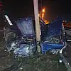 Aydınlatma direğine çarpanaraç hurdaya döndü