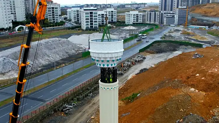 Beton dökme yöntemi ile 3 ya da 4 ay süren yapım aşamasında muhtemel bir deprem durumunda da yıkım riski fazlayken, yeni yapılan ve özellikle de büyükşehirler de kurulumuna başlanan fiberglass minare sistemi üretimi yapıldıktan sonra yarım gün içerisinde montajlanabiliyor. Yeni nesil depreme dayanıklı minarelerin kurulum aşaması dron ile havadan görüntülendi.