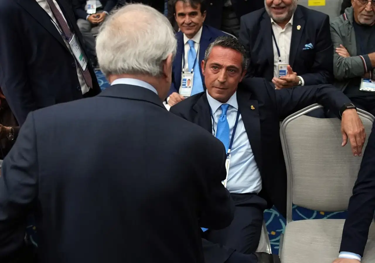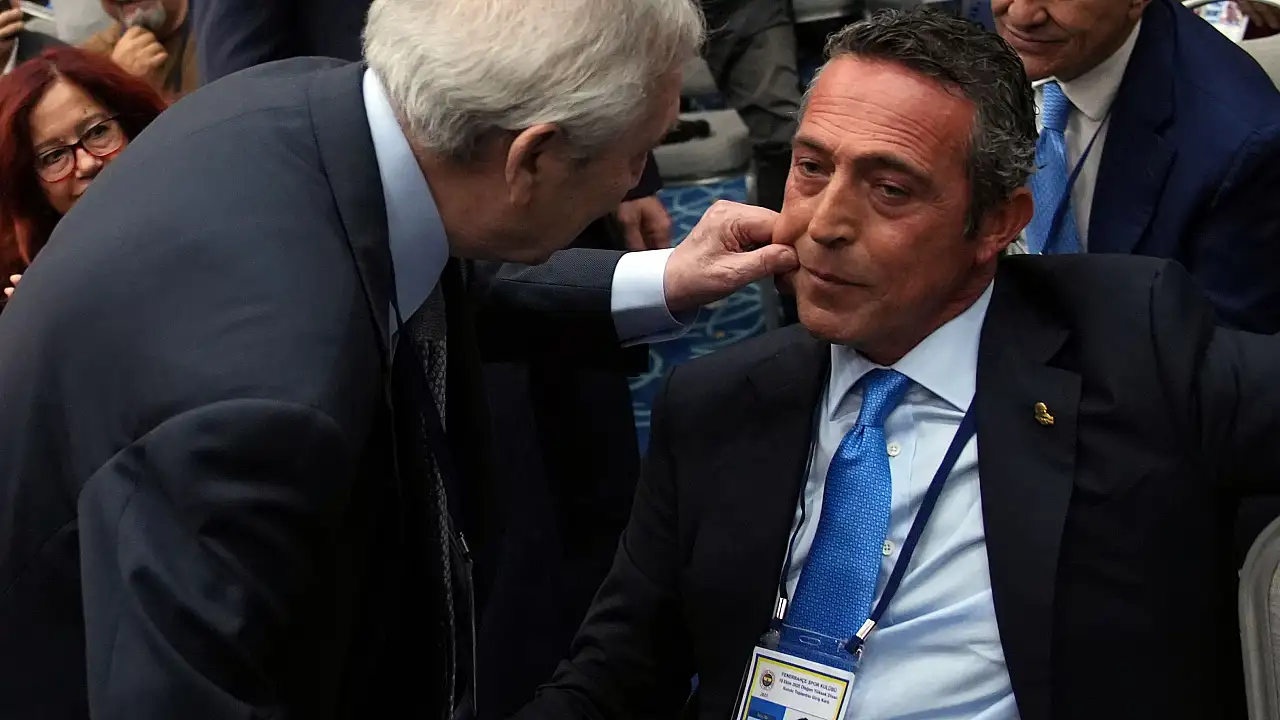 Fenerbahçe eski başkanları Aziz Yıldırım ile Ali Koç arasında, kürsü konuşmaları sonrası diyalog dikkat çekti. Konuşmanın ardından Aziz Yıldırım yanağını sıktı.
