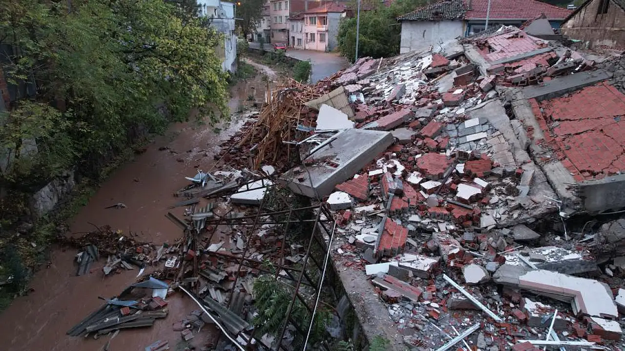 Balıkesir'in Sındırgı ilçesinde dün gece meydana gelen 6.1 büyüklüğündeki depremde yıkılan ve hasar gören binalar görüntülendi.