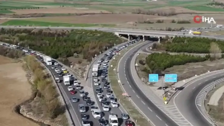 Bayram tatili dönüşünde otoyolda 70 kilometrelik araç kuyruğu