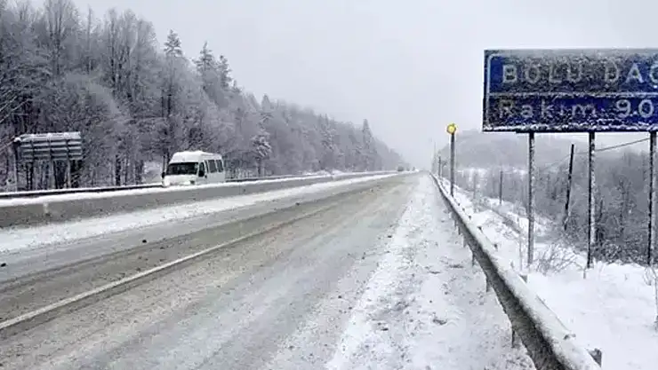 Bolu'da etkisini artıran kar yağışı nedeniyle D-100 karayolunun Bolu Dağı geçişi Ankara istikameti ağır taşıt trafiğine kapatıldı.