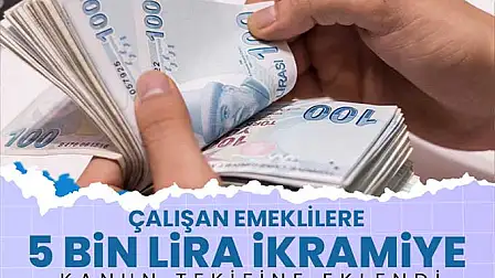 Çalışan emeklilere 5 bin lira ikramiye verilmesini kapsayan önerge kanun teklifine dahil edildi.