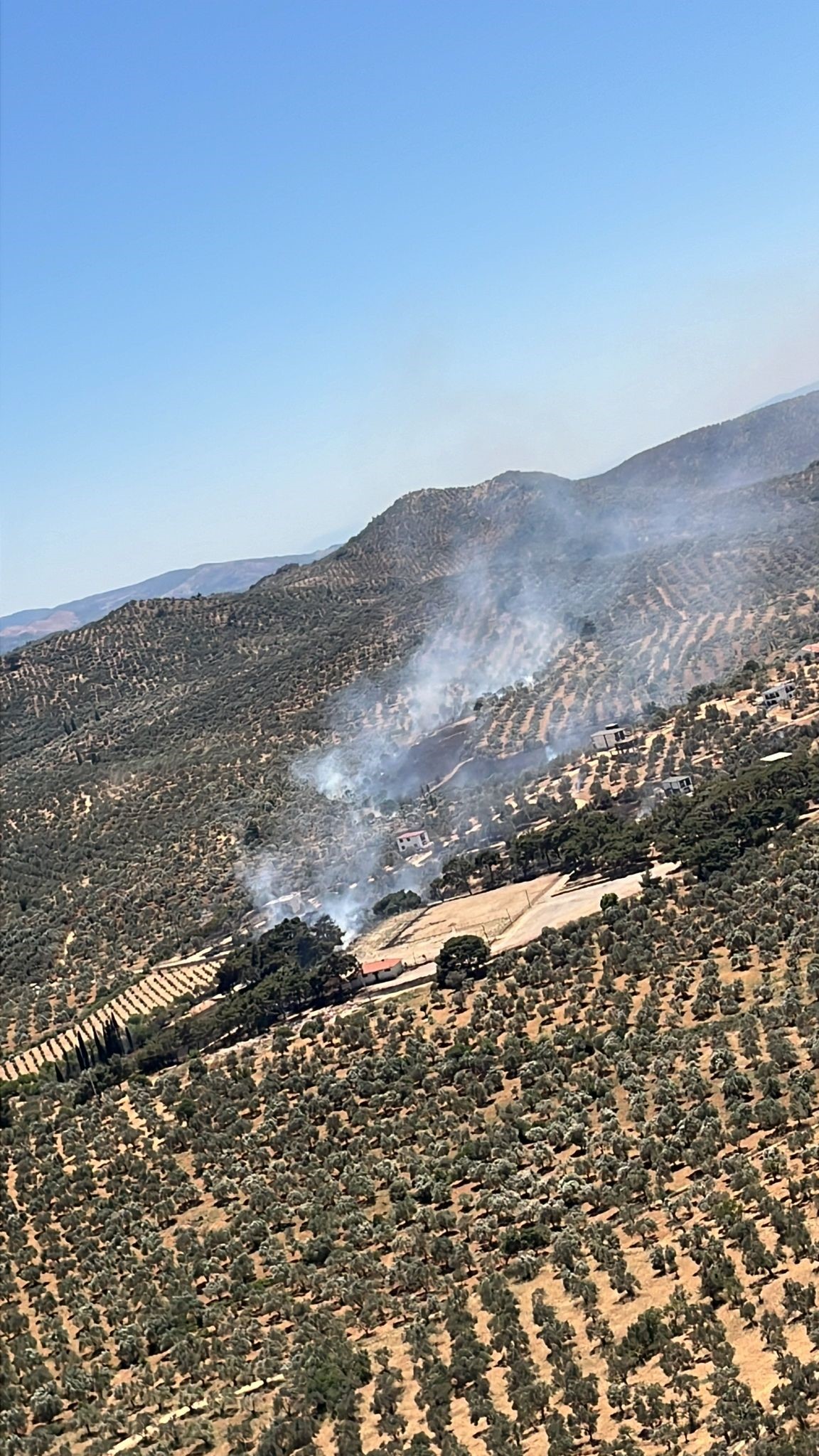 Balıkesir'in Burhaniye ilçesinde çöplükte başlayan yangın zeytinlik alana sıçradı. Havadan ve karadan müdahale edilerek yangın kontrol altına alındı.