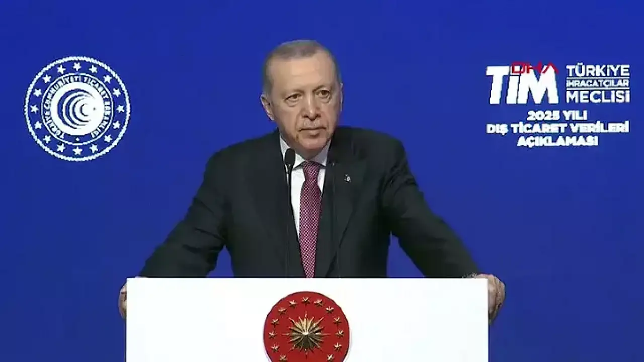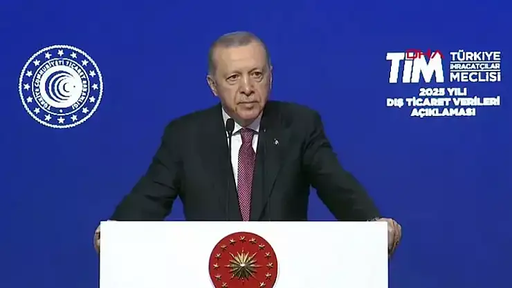 '2025 Yılı Dış Ticaret verilerinin açıklandığı programda konuşan Cumhurbaşkanı Erdoğan ''Aralık ayında 26,4 milyar dolarla aylık bazda yeni bir ihracat rekoruna imza attık. Aralık ayında 26,4 milyar dolarla aylık bazda yeni bir ihracat rekoruna imza attık. İlk defa aylık ihracatımız 26 milyar dolar eşiğini aşmış oldu. 2025 yılı mal ihracatımızda da benzer bir rekor söz konusu. Önceki yıla kıyasla yüzde 4,5 artan mal ihracatımız dikkatinizi çekiyorum, toplam 273,4 milyar dolara ulaştı. 2025 yılında en yüksek yıllık ihracatı gerçekleştirdik' dedi.