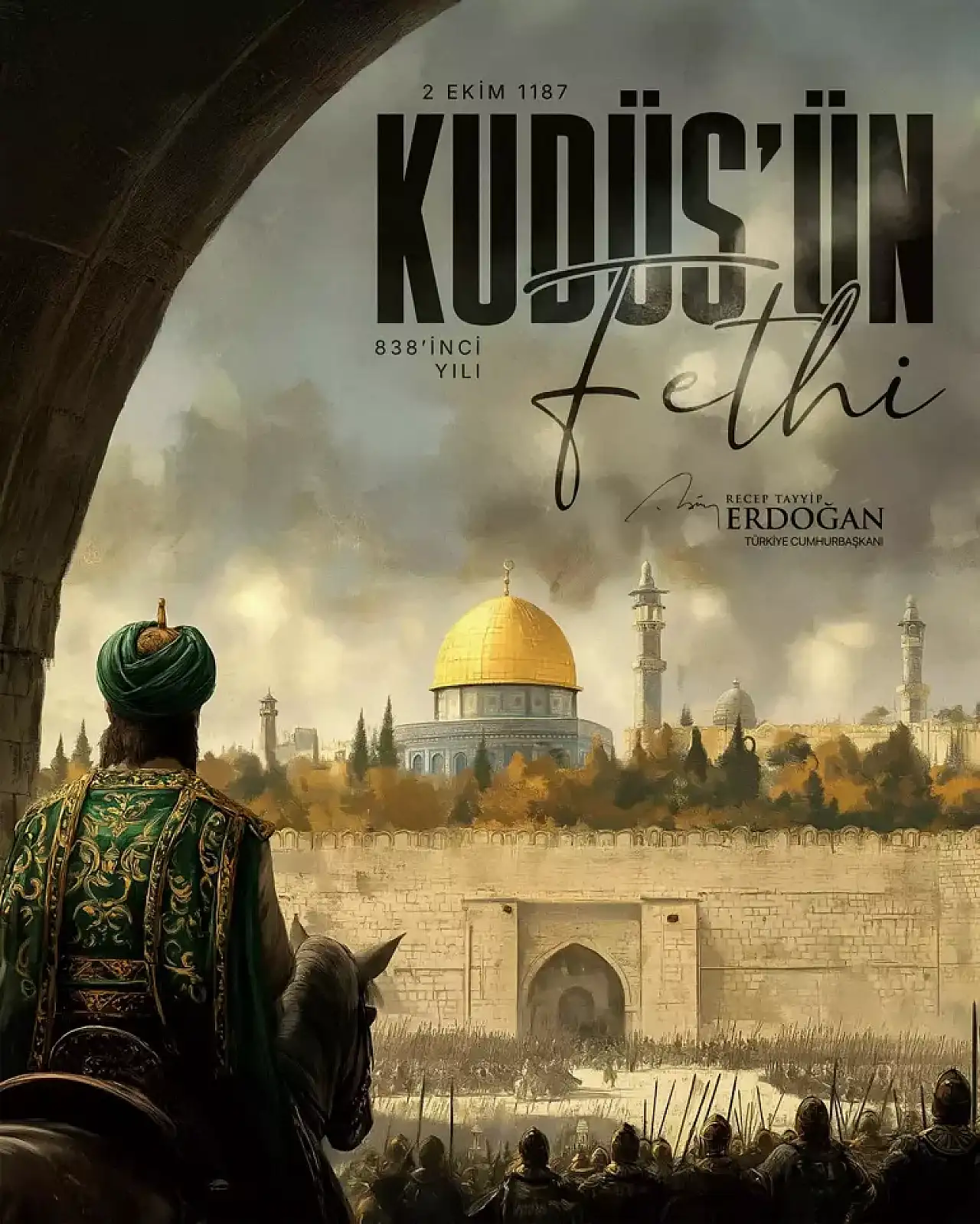Cumhurbaşkanı Erdoğan, Nsosyal hesabı üzerinden yaptığı paylaşımında, "Kudüs’ün Fethi’nin 838’inci yıl dönümünde, bu mukaddes şehrin ikinci fatihi Selahaddin Eyyubi’yi ve kahraman askerlerini rahmetle yad ediyorum. Hazreti Nebi’nin ve ondan önce gelen peygamberlerin bizlere emaneti olan Kudüs için mücadele etmeyi azim ve kararlılıkla sürdüreceğiz" ifadelerini kullandı.