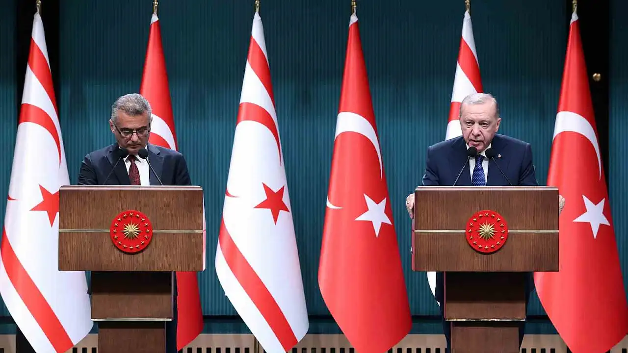 Cumhurbaşkanı Erdoğan, Erhürman’ı tebrik ederek sözlerine başladı. Erdoğan, "19 Ekim 2025 tarihindeki Cumhurbaşkanlığı seçimleri huzur içerisinde gerçekleşti. Sayın Cumhurbaşkanı’na bir kez de huzurlarınızda yeni görevinde Cenab-ı Allah’tan muvaffakiyetler diliyorum. Öncelikle iki gün sonra 42. kuruluş yıl dönümünü idrak edeceğimiz Kuzey Kıbrıs Türk Cumhuriyeti’nin bu müstesna gününü tebrik ediyorum. Kıbrıs Türkü kardeşlerime muhabbetlerimi gönderiyorum. Milli davamız Kıbrıs’ta adil, kalıcı ve adadaki gerçeklere uygun bir çözüme ulaşılmasına yönelik mücadelemizi Sayın Erhürman’la yakın eş güdüm içerisinde kararlılıkla sürdüreceğiz" dedi.