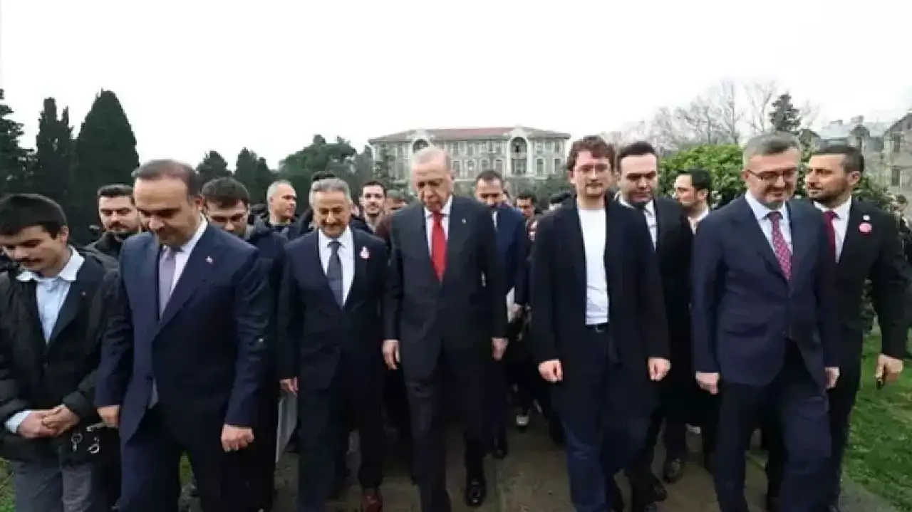 Öte yandan Cumhurbaşkanı Erdoğan, Boğaziçi Üniversitesi'nde bazı öğretim üyelerinin yıllardır provokasyonlarıyla gündeme gelen yerde öğrencilerle birlikte yürüdü.