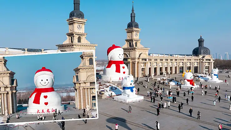 Harbin'de yapılan dev kardan adam yılbaşı öncesinde birçok kişinin ziyaret ettiği ve selfi çektirdiği mekan oldu