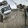 İzmir'in Bornova ilçesinde yağmur nedeniyle kayganlaşan zeminde kontrolden çıkan taş yüklü tır devrilerek viyadükte askıda kaldı. Kazada hafif yaralanan şoför, itfaiye ekipleri tarafından kurtarıldı.