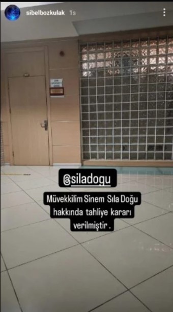 Bu kararın üzerine Sıla Doğu'nun avukatı Sibel Bozkulak, sosyal medya hesabı Instagram'dan "Müvekkilim Sinem Sıla Doğu hakkında tahliye kararı verilmiştir" yazarak paylaşım yaptı.