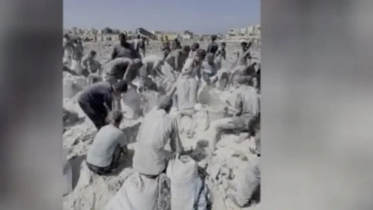 Gazze'de Kıtlık Derinleşti Yere Saçılan Unları Topluyorlar