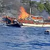 Muğla'nın Fethiye ilçesi Göcek açıklarında gulet tekneden çıkan yangını söndürme çalışmaları sürüyor.