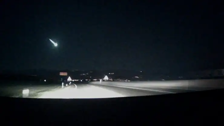 Ödemiş yolunda seyir halinde olan, Batuhan Baştuğ adlı vatandaşın araç kamerasına heyecan oluşturan bir görüntü yansıdı. Ödemiş istikametine seyir halinde olan aracın kamerasında, meteor olduğu iddia edilen bir cisim gökyüzünde görüldü.